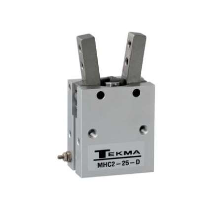 Chwytaki o szczękach kątowych są dostępne w czterech rozmiarach w wersjach pojedynczego i podwójnego działania. Zamontowany w standardzie magnes oraz odpowiednie rowki w profilu umożliwiają łatwy i bezpośredni montaż czujnika zbliżeniowego. Otwory montażowe zapewniają szerokie możliwości zamocowania chwytaków oraz umożliwiają podłączenie elementów dodatkowych.