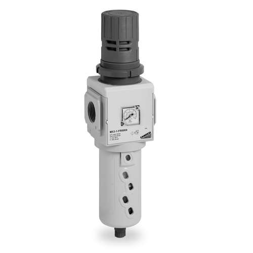 Filtro-regulatory serii MX składają się z filtra i regulatora ciśnienia w jednym zespole, co zapewnia kompaktową budowę. Nadają się do filtracji wtórnej. Dostępne są wersje ze spustem lub bez (odpowietrzenie), wyposażone w zawór membranowy do dokładniejszej regulacji ciśnienia, ze spustem kondensatu ręcznym lub automatycznym. Dodatkowo posiadają wbudowany manometr.