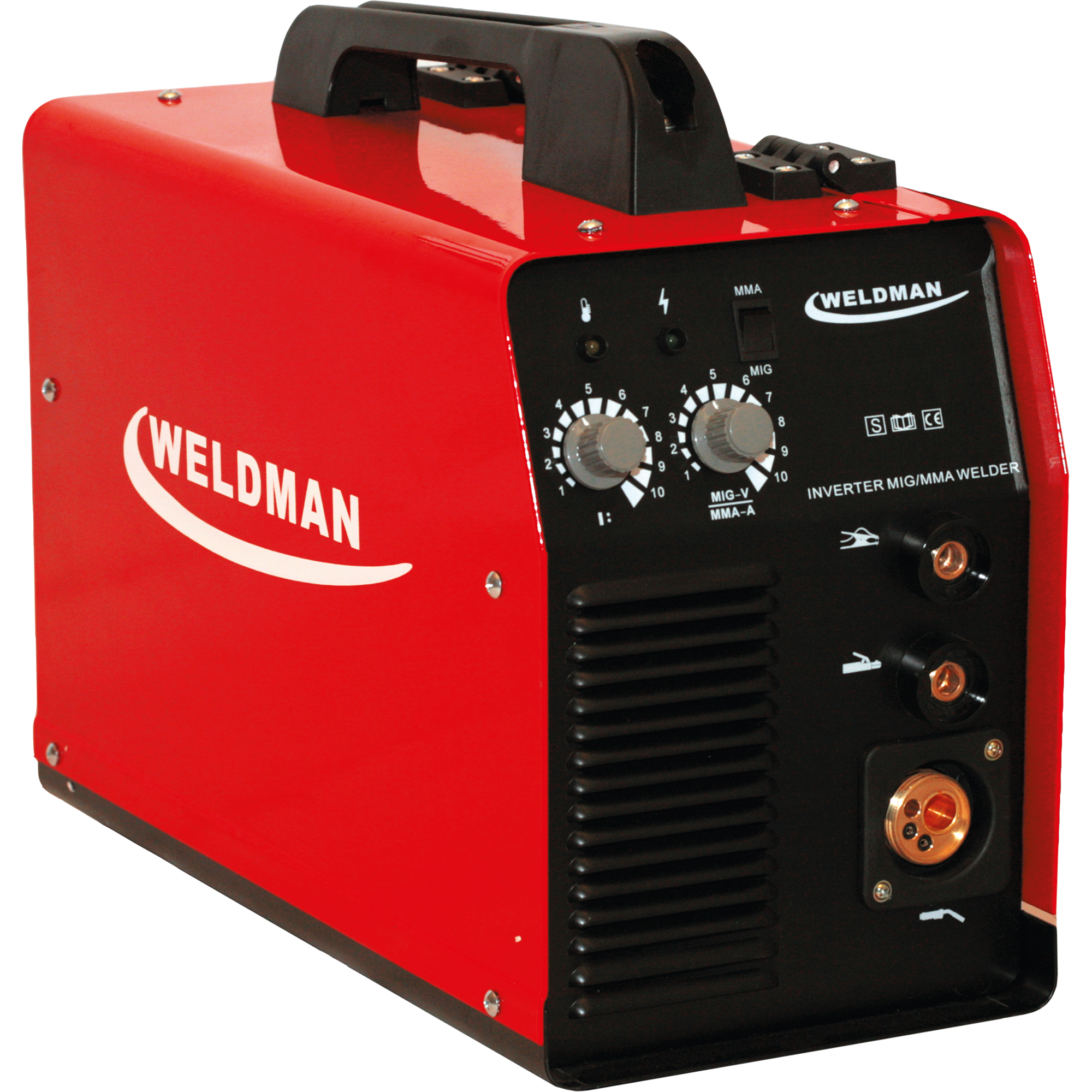 Półautomat spawalniczy zasilany jednofazowo WELMIG 180 wykonany w technologii inwertorowej IGBT do spawania metodą MIG/MAG (w osłonie gazu) lub FLUX (bez osłony gazu) oraz do spawania elektrodami otulonymi prądem stałym (DC).