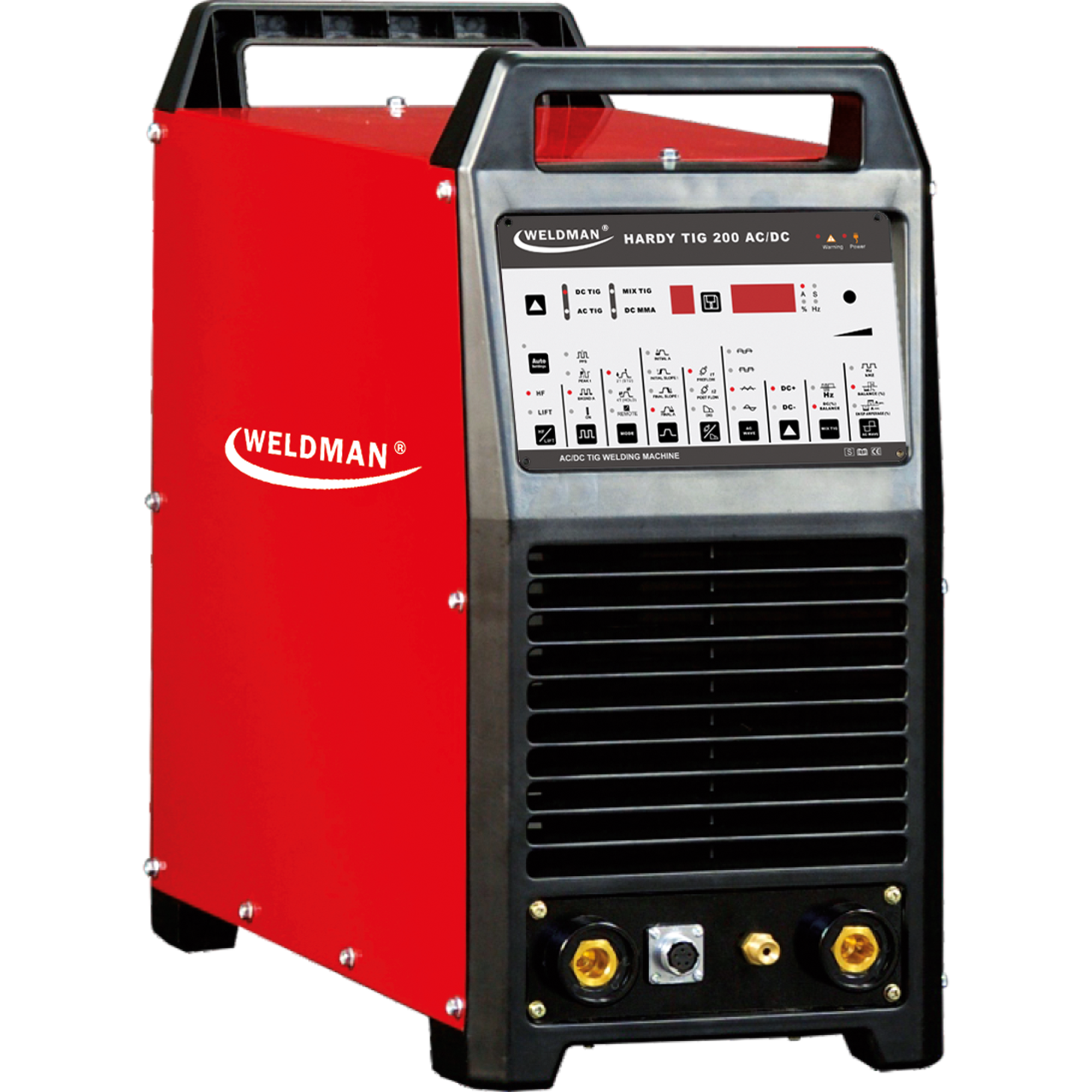 Spawarka inwertorowa HARDY TIG 200 wykonana w technologii IGBT do spawania metodą TIG AC/TIG AC PULS/ TIG DC/TIG DC PULS/TIG MIX (AC DC) prądem stałym (DC) lub zmiennym (AC) oraz metodą MMA elektrodami otulonymi prądem stałym (DC).