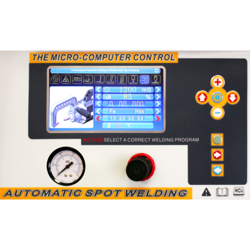 Regulacja parametrów pracy może się odbywać równoległe na ekranie dotykowym lub przyciskami na panelu przednim. Na panelu przednim umieszczony jest również wskaźnik ciśnienia sprężonego powietrza. Zgrzewarka ma szerokie zastosowanie zarówno w warsztatach wykonujących profesjonalne naprawy blacharskie dla motoryzacji jak i w przemyśle.
